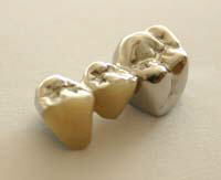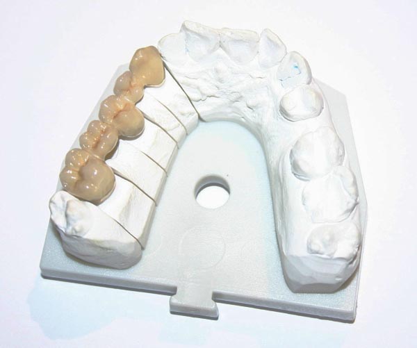 angefertigten Brücke benutzt. In der Brücke selbst sind die fehlenden Zähne